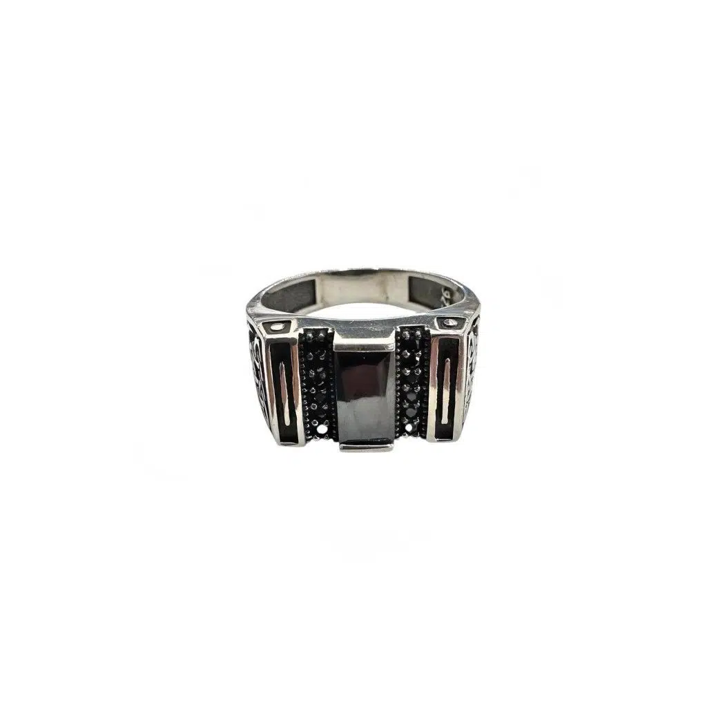 Onyx ve Zirkon Taşlı Gümüş Yüzük 250057494G12Y